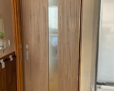 レールや戸車が経年劣化しているうえ、引戸そのものも重く開閉が困難な状態でした。 引戸を新しくすることで、開閉がとっても楽になりました。壁などを壊すこともないので、1日で工事は完了しました。